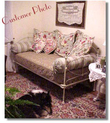 Joanne Z. of Greenwich, CT purchased this antique twin which we converted to a daybed for her home office. Joanne, a contributing columnist to the Greenwich Time, writes, "It's fabulous! I love my bed/couch!"