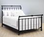 Includes headboard, footboard and frame system. Frame comes standard in a matte black finish.